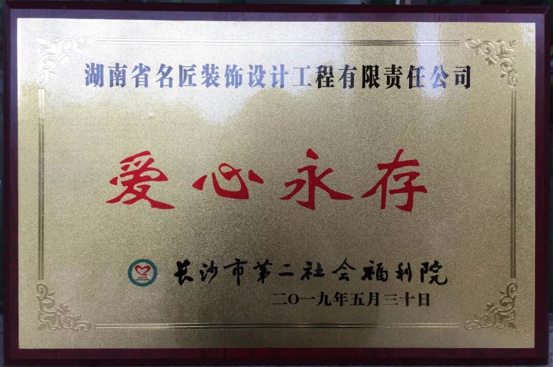 长沙市第二社会福利院为名匠装饰爱心授牌并表示感谢